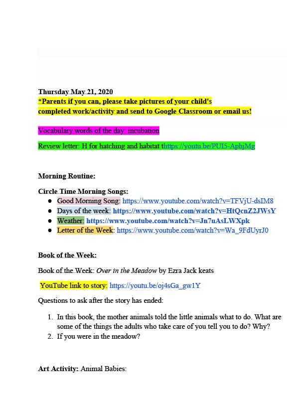 Habitot Pre-K May 18th