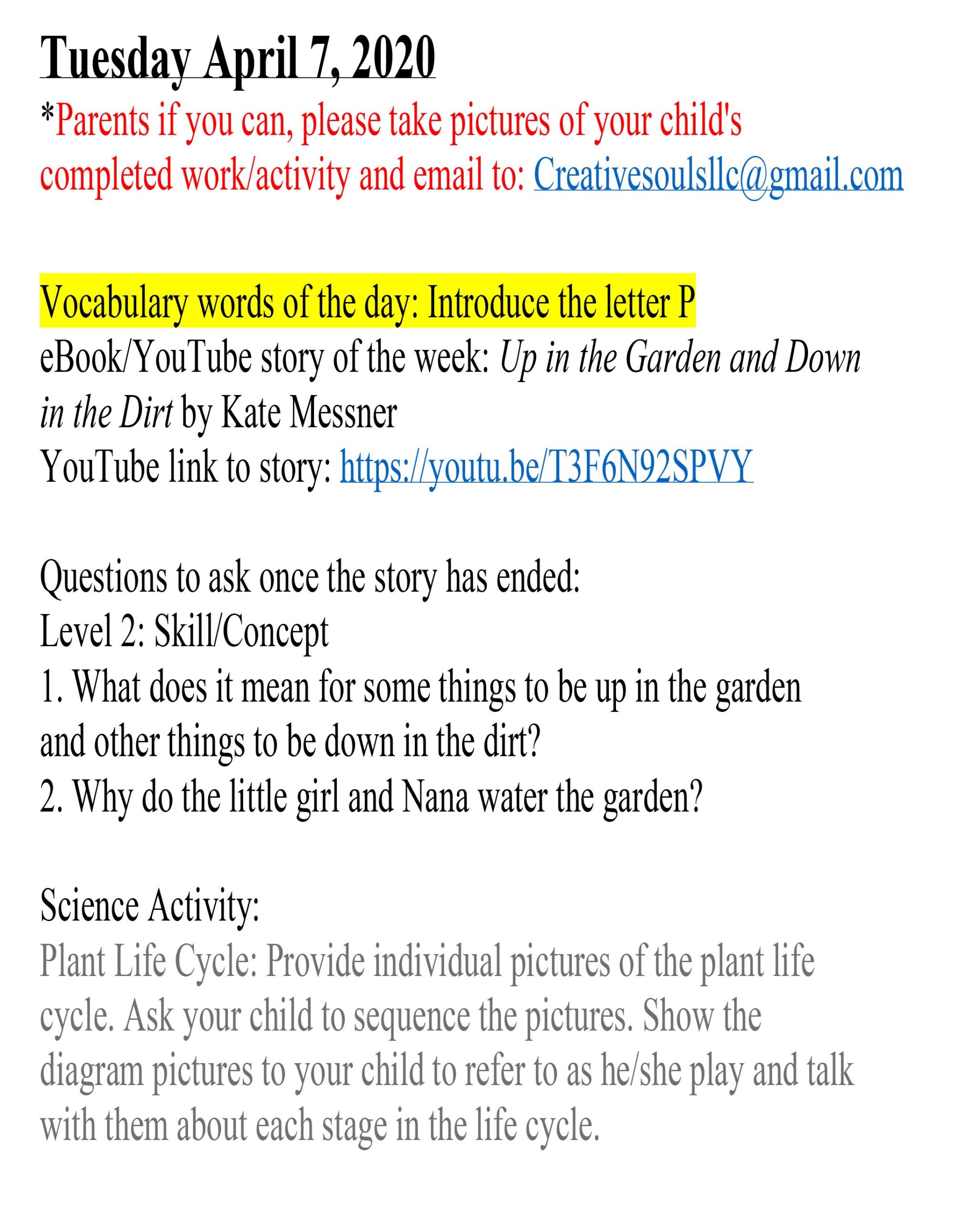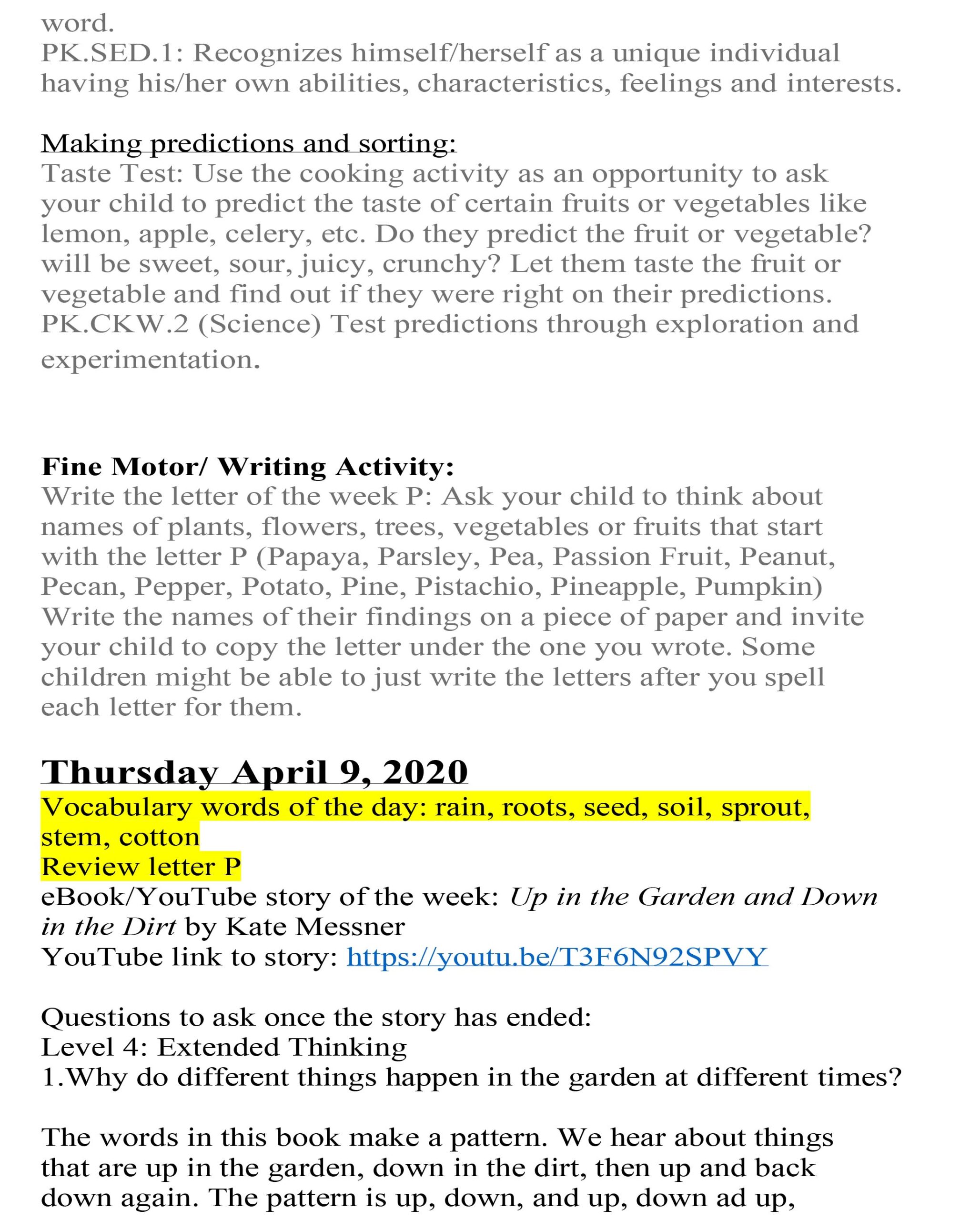 Room 221 April Lesson Plan